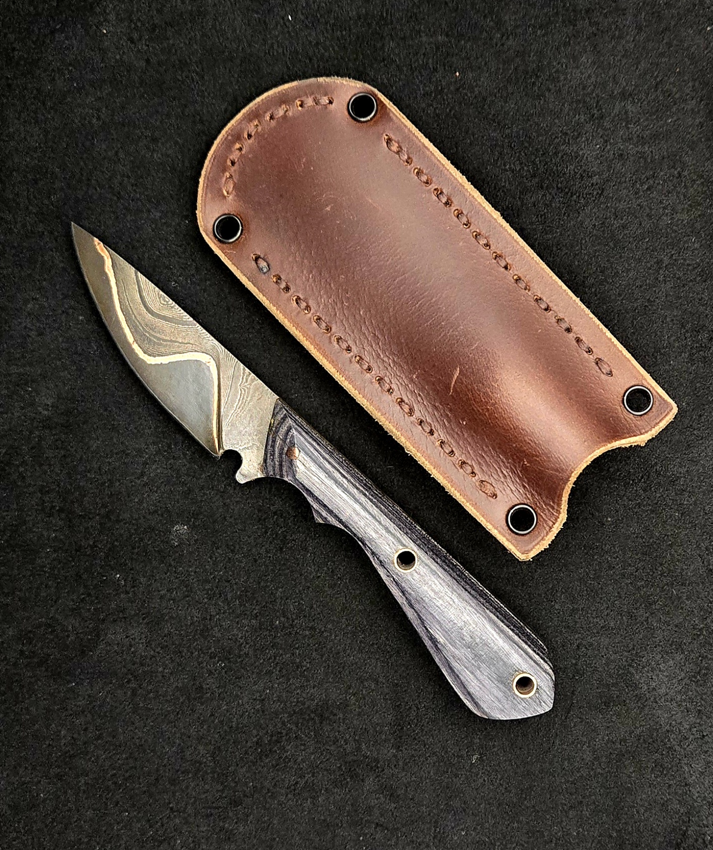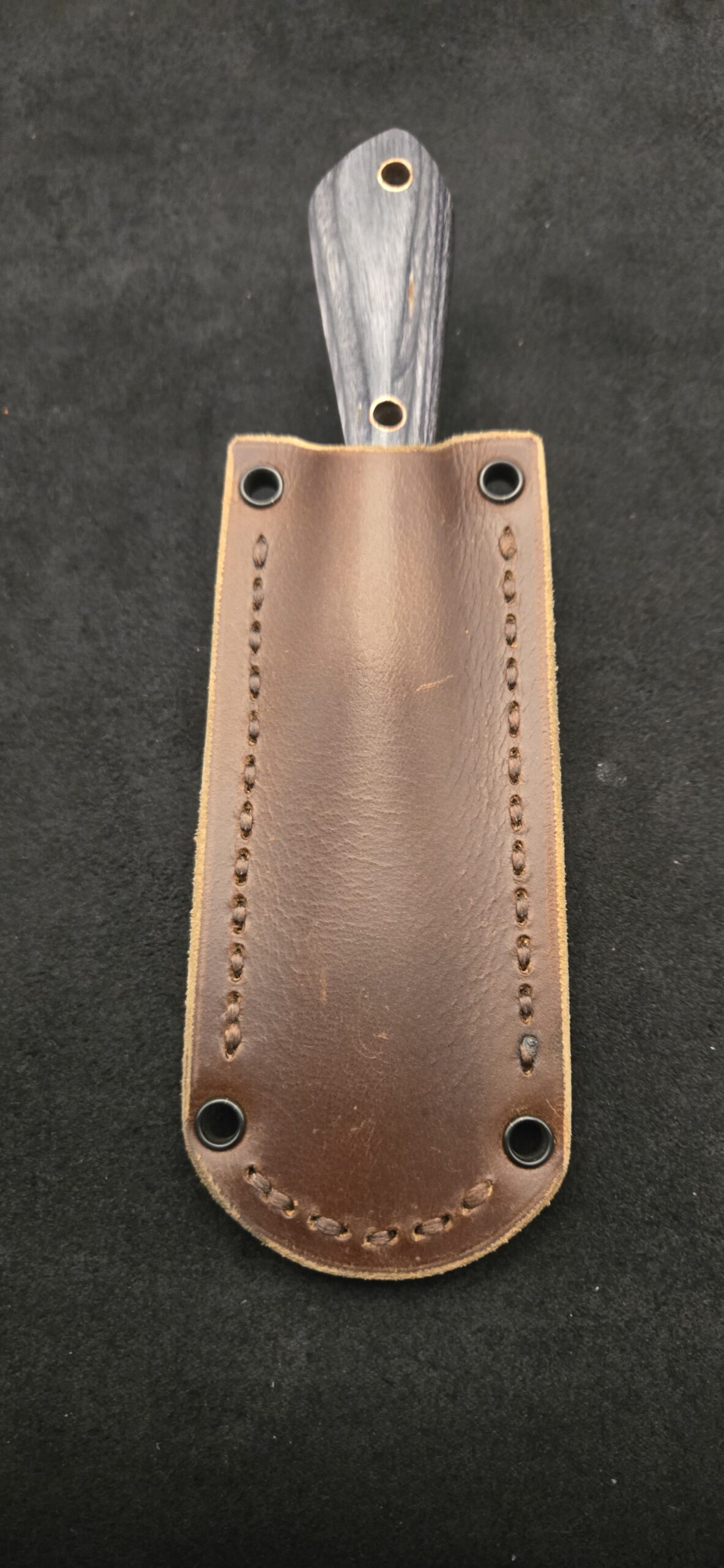 Handle: charcoal dymalux with copper pins and lanyard hole.